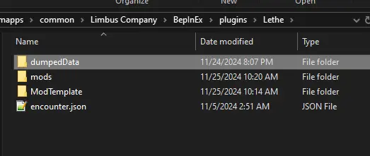 contains all the localization files that limbus uses. These folders can be found by going into path to limbuscompany\BepInEx\plugins\Lethe\..