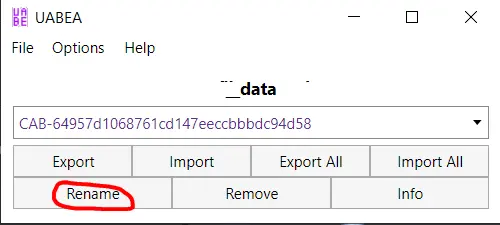 • To avoid crashes you also need to rename the CAB to something else, anything would work as long as it doesn't clash with any in-game names.